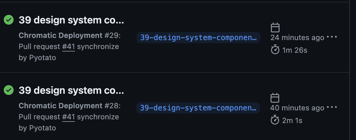 ์์ ์ค์ธ ์ปดํฌ๋ํธ๋ค์ ํ๋์ฉ ๋ง๋ค๋ฉด ๋์์ธ ์์คํ ์ ํฉ์ณ์ฃผ๊ณ ์ด๋ฅผ ๋ฉ์ธ์ ํฉ์ณ์ฃผ๋ ๋ฐฉ์์ธ๋ฐ, ํ์ฌ๋ pr์ ๋ ๋ฆฌ๋ฉด main๊ณผ์ ๋น๊ต์์๋ง action์ด ๋์ํ๋ ๊ฒ์ด์๋ค.