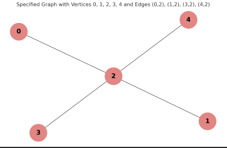 ์๋ฅผ ๋ค๋ฉด ๋ค์๊ณผ ๊ฐ์ ๊ทธ๋ํ๊ฐ ์๋ค๊ณ ํ์. vertice 2๋ ๋๋จธ์ง 0,1,3,4์ ์ฐ๊ฒฐ๋ edge๋ค์ด ์๋ค.