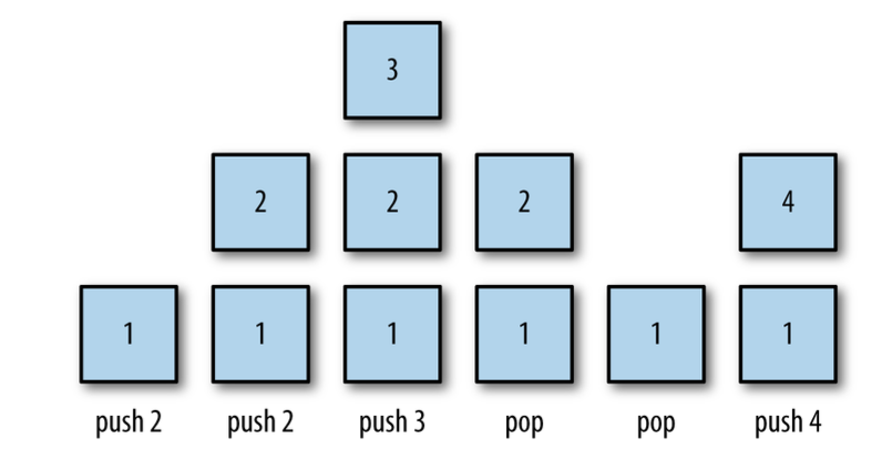 ์คํ ์๋ฃ๊ตฌ์กฐ๋ ๋ง์ฐฌ๊ฐ์ง๋ก LIFO (last-in-first-out), ๋ง์ง๋ง์ ๋ค์ด์จ ์๋ฆฌ๋จผํธ๋ฅผ ๊ฐ์ฅ ๋จผ์ ์ ํ๋ ๊ตฌ์กฐ๋ค.