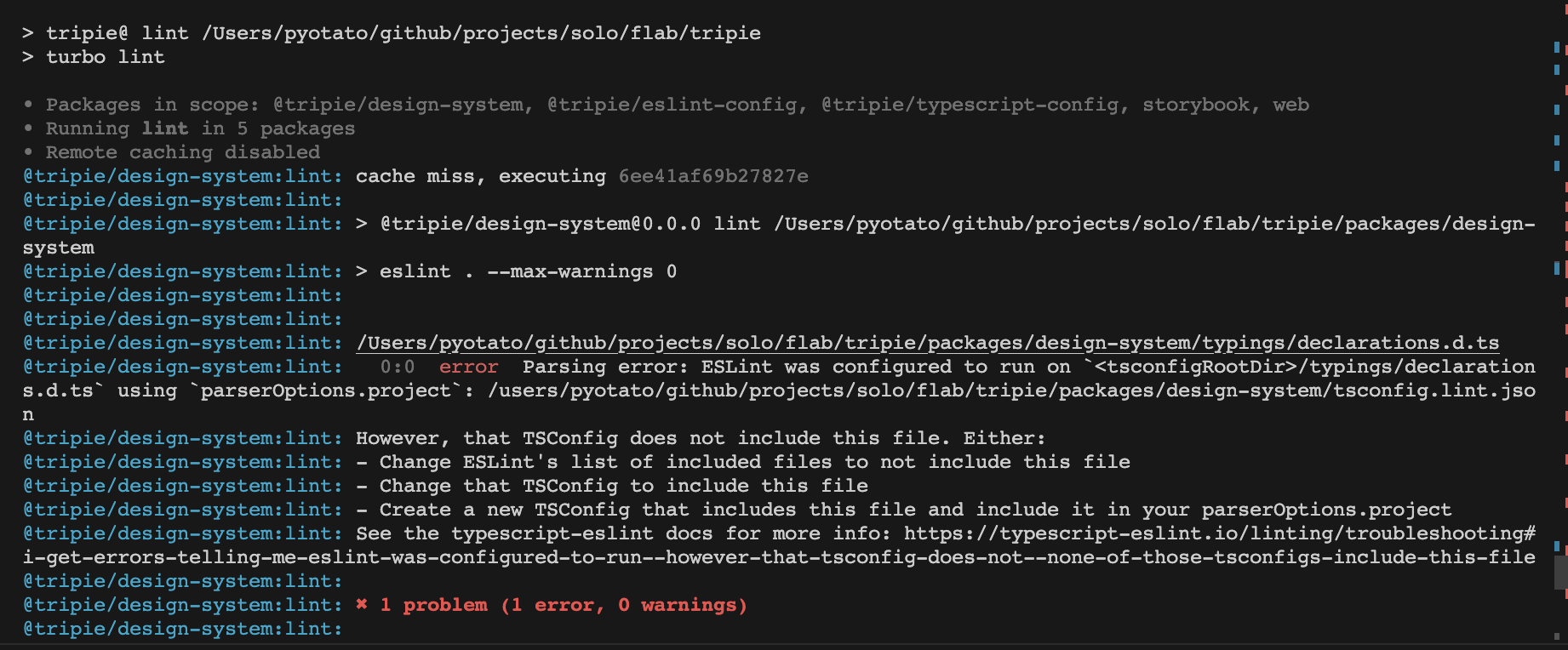 turborepo를 처음 써봤는데, 좋은 점은 아무래도 에러 로그가 잘 되어 있는 것 같다.